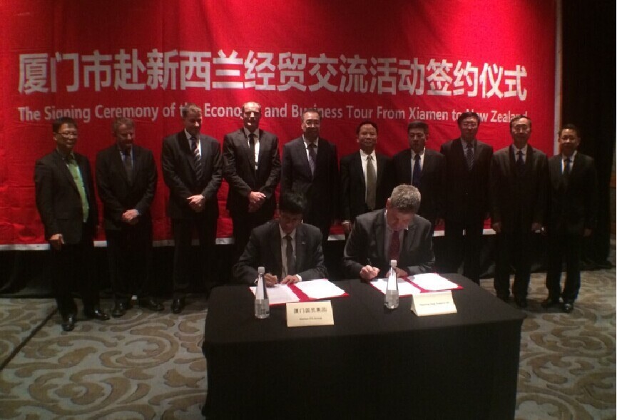 “厦门市赴新西兰经贸交流活动”签约仪式昨日在奥克兰举行。在市长刘可清的见证下,国贸集团董事长何福龙与新西兰合作伙伴现场进行签约。