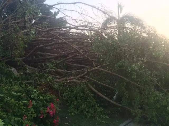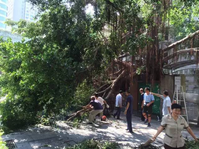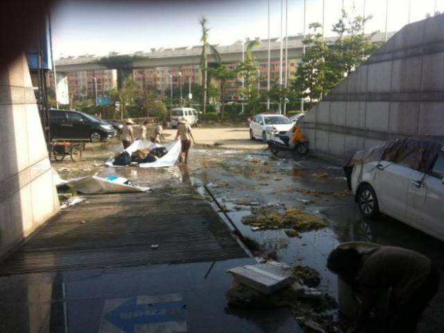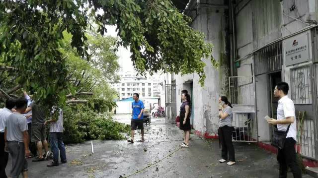 在物业公司员工的帮助下,几个被风吹破的玻璃很快被用木板临时加固。在他们和地产厦门公司全力协助以及社区志愿者配合下,被倒坍大树阻挡的进出国贸大厦的 唯一通道于17日上午顺利打通,所有树枝分三部车也在当天晚上8时许的瓢泼大雨中运走,确保了18日上班车辆的正常通行。