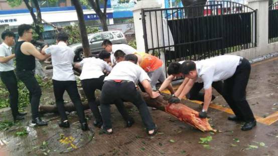 台风无情国贸有爱。台风过后,很多公司员工还自愿加入了所在小区的救灾工作,以实际行动展现了国贸人的情操。
