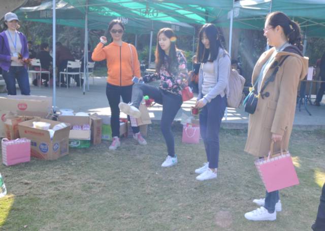 在地产公司美女领跳热身操后,健步走,猜灯谜,踢毽子,踩气球,套礼品、公仔人偶……欢声笑语中,国贸人相互问候,携手同行。2016,一路有你,2017国贸人一起前行!
