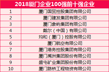 “2018厦门企业100强”