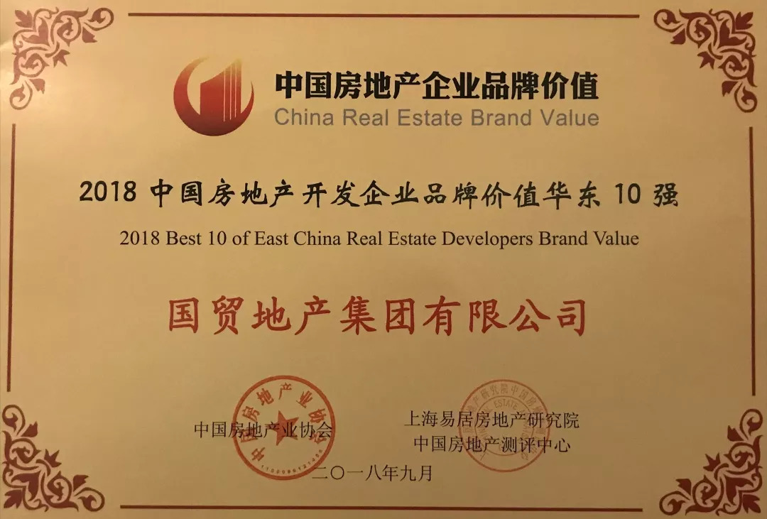 喜报丨国贸地产荣获2018中国房地产品牌价值测评华东10强